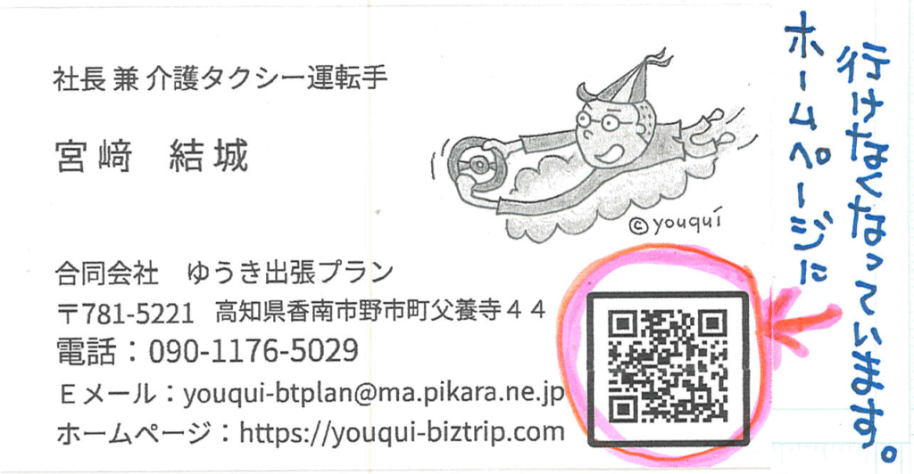 それでも、このQR以外のこと(電話番号、Eメールのアドレス、ホームぺージのURL)には、全く変更はありませんので、ホームページをご覧になる場合は、お手数ですが、会社名の「ゆうき出張プラン」もしくは「youqui-biztrip」で検索をお願いいたします。どうぞ、よろしくお願いいたします。